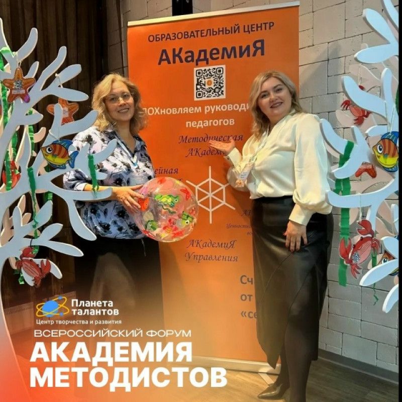 Наша команда в составе Натальи Николаевны Малеевой, директора Планеты талантов, и Виктории Петровны Гейн, методиста нашего учреждения, приняла участие во всероссийском форуме «Академия методистов», проходившем 27 и 28 ноября в Екатеринбурге. Участниками мероприятия стали методисты из 37 регионов страны. Тема форума: «Обучение со смыслом. Современные практики и форматы методической работы». Программа мероприятия включала сразу три содержательные вертикали: - Форматы индивидуальной работы с педагогами - Новые форматы методических событий - Подходы к организации методической работы в организации Всего было презентовано около 30 новых форматов — среди них особо запомнились оригинальные методики, такие как «Распускающийся лотос», «Шаги», «Заметки на полях», «Методический сет», «Методический эхолот» Коллеги вернулись домой вдохновлёнными новыми возможностями, полными энергии и готовыми применять современные инструменты для развития профессионального мастерства педагогов дополнительного образования!✨