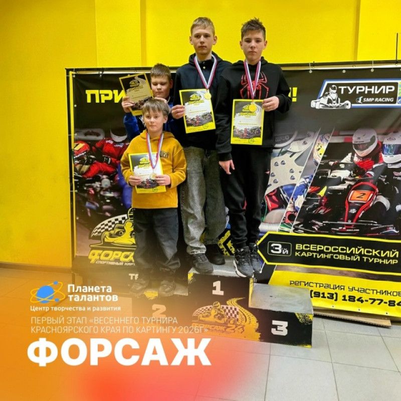 Произошло яркое событие в календаре Планеты талантов! Наши спортсмены приняли участие в 1-м этапе «Весеннего Турнира Красноярского края по картингу 2026 г.» в СКЦ «Форсаж», город Красноярск В номинации «соревнования» под руководством педагога дополнительного образования Боронина Александра Евгеньевича наши ребята показали отличные результаты: 🥇 Дмитрий Шалыгин — 1 место 🥇 Евгений Рымшин — 1 место 🥈 Даниил Мерзляков — 2 место 🥈 Тимофей Девятников — 2 место Поздравляем победителей и всех участников! Гордимся вашими достижениями и желаем новых побед! 🏁🚥 #Ачинск #ПланетаТалантов #Я_талант