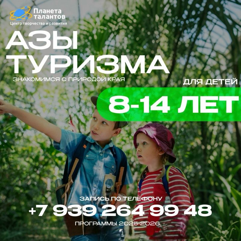 «Азы туризма» — увлекательная программа для знакомства с природой и культурой родного края! Ваш ребёнок: ✅расширит кругозор ✅приобретёт первые навыки ориентирования ✅узнает правила поведения на экскурсиях и в походах Программа наполнена яркими впечатлениями, полезными открытиями и радостными моментами, которые останутся в памяти надолго! 🌟 Возраст: 8-14 лет 👧👦 Срок обучения: 1 год 📅 Педагоги: Бикищенко Андрей Константинович и Савенкова Светлана Алексеевна 👨🏫👩🏫 Запись на программу: 🗒 через Госуслуги 👩🏼💻через Навигатор: navigator.krao.ru 🌐на нашем сайте: планетаталантов.рф/zapisatsya... 📲8-939-264-99-48 или по адресу м-он 5, 14 Откройте для ребёнка мир туризма и приключений! 🥾🗺