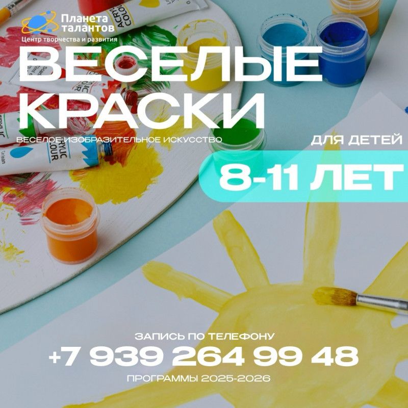 Наши краски самые веселые 🎨 Приглашаем детей на обучение по изобразительному искусству Программа «Веселые краски» направлена на: ✅развитие художественно-эстетичного вкуса ✅обучение различным техникам рисования ✅знакомство с видами и жанрами изобразительного искусства 👧🏼👦🏻Возраст: 8-11 лет Срок обучения: 1 год 👩🏫👨🎨Педагоги: Гостева Елена Досиориевна, Разанчугов Геннадий Лукич Запись на программу: 🗒 через Госуслуги 👩🏼💻через Навигатор: navigator.krao.ru 🌐на нашем сайте: планетаталантов.рф/zapisatsya... 📲 +7 939 264 99 48 или по адресу м-он 5, 14