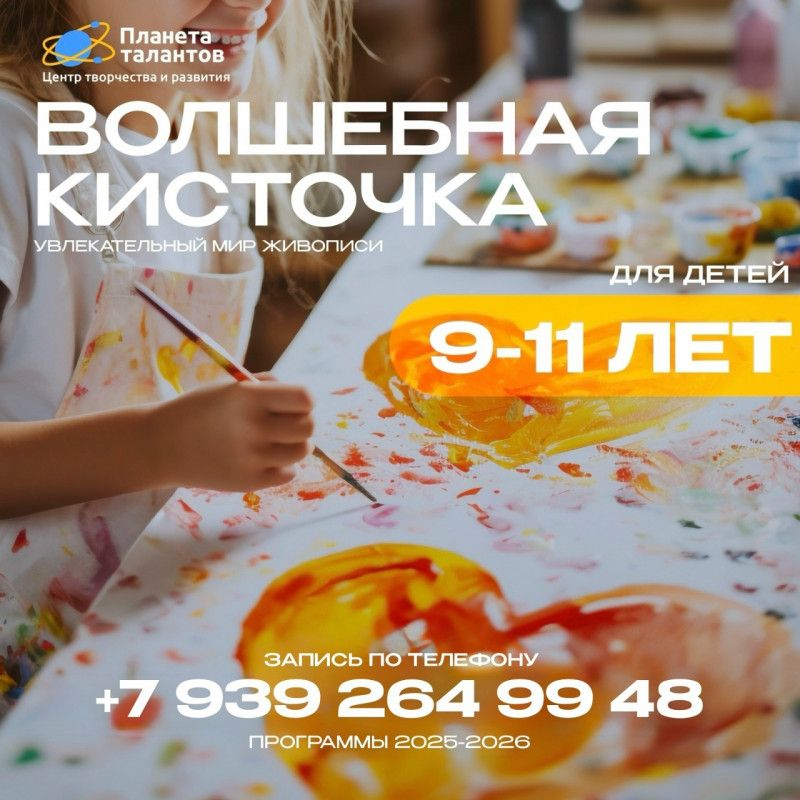 Ваш ребёнок может больше, чем просто рисовать! Открыт набор в программу «Волшебная кисточка» для детей 9–11 лет 🎨 Под руководством педагога Елены Досиориевны Гостевой ребята откроют мир красок, создадут первые настоящие картины и разовьют креативность 🌈 Что ждёт: ⭐ яркие мастер-классы ⭐ поддержка и индивидуальный подход ⭐ уверенность в себе и радость творчества 🧒🏼👧🏻Возраст: 9-11 лет ⏲Срок обучения: 1 год 👩🏻👨🎨Педагоги: Гостева Елена Досиориевна, Разанчугов Геннадий Лукич 📌 Мест немного! Запишите ребёнка уже сегодня и подарите ему вдохновение 🗒 через Госуслуги 👩🏼💻через Навигатор: navigator.krao.ru 🌐на нашем сайте: планетаталантов.рф/zapisatsya... 📲 +7 939 264 99 48 или по адресу м-он 5, 14